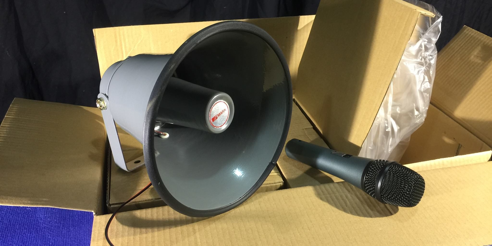 – Se vende set de megafonía compuesto por dos bocinas, amplificador y micrófono.